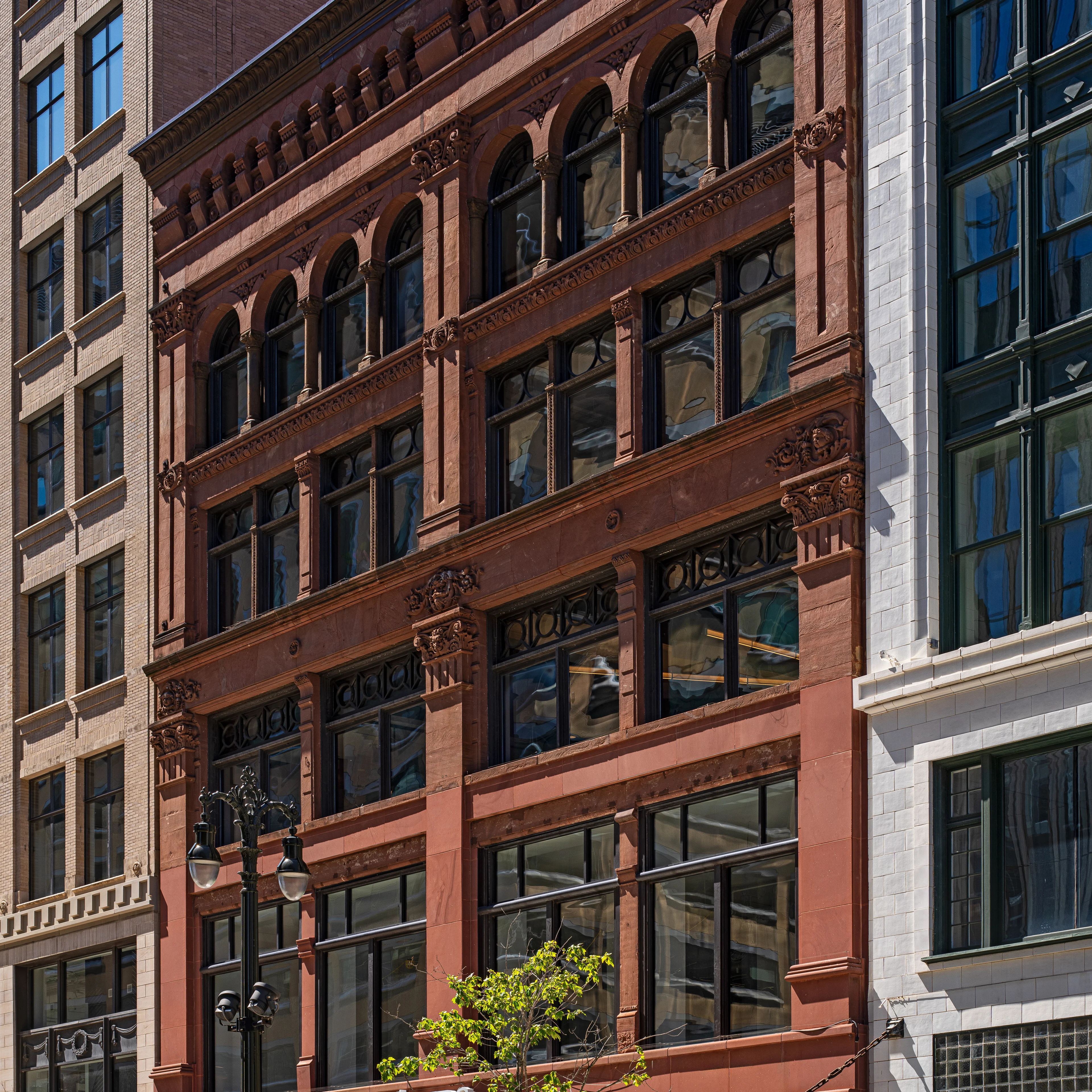 Designed by architect Gordon Lloyd and originally constructed in 1890 for a clothing store, 1217 Woodward was renovated in 2018 by architecture firm Kramer Design Group and converted into offices and street level retail. This five-story brownstone offers an unmatched Woodward Avenue location across from the vibrant Hudson’s Detroit mixed-use development, just blocks from Detroit’s Campus Martius Park and Capitol Park neighborhoods. Notable features include historic detailing, a central historic atrium penthouse office suite and a recent lobby renovation that restored the original skylight and interior gold leafing.