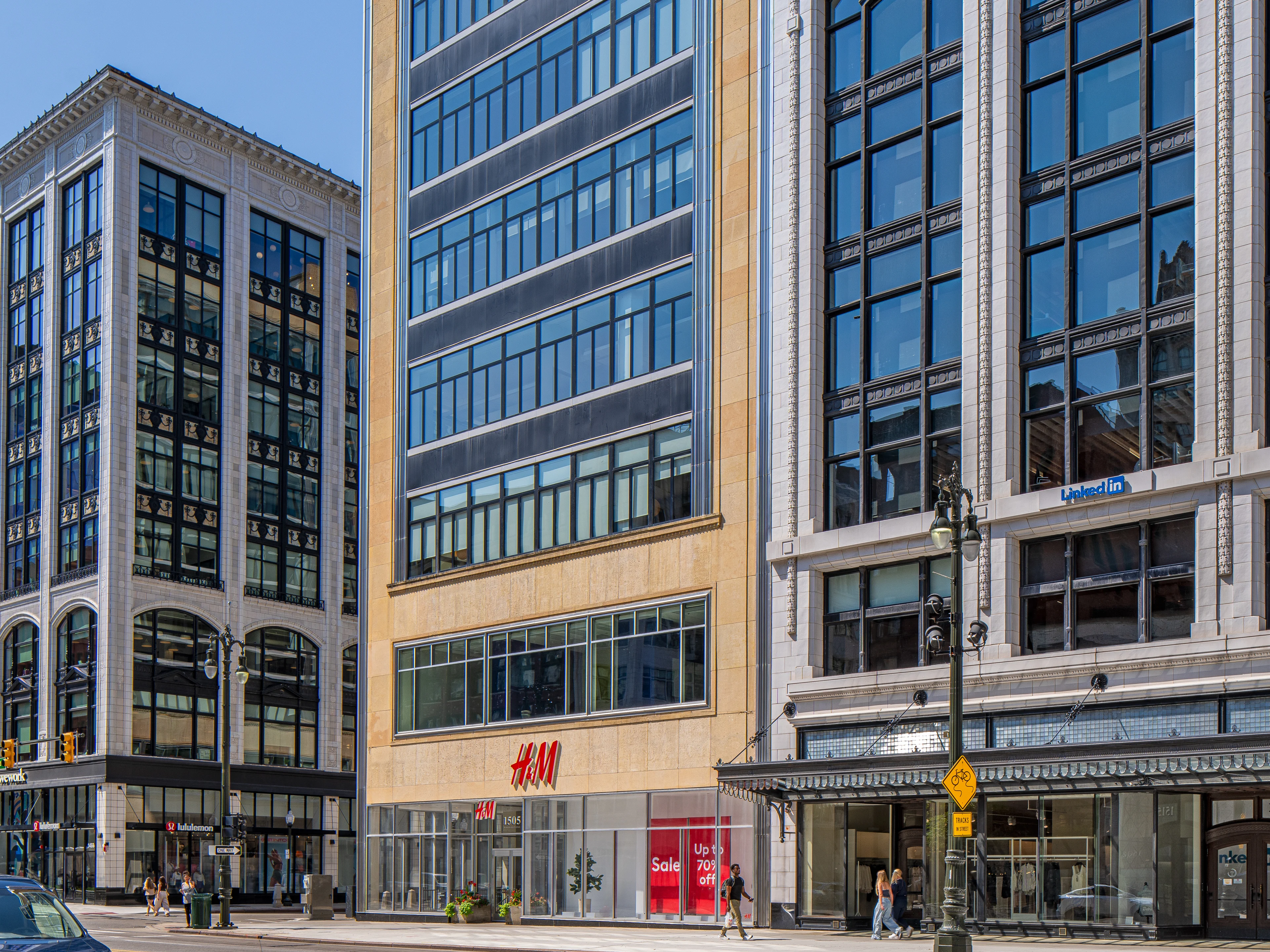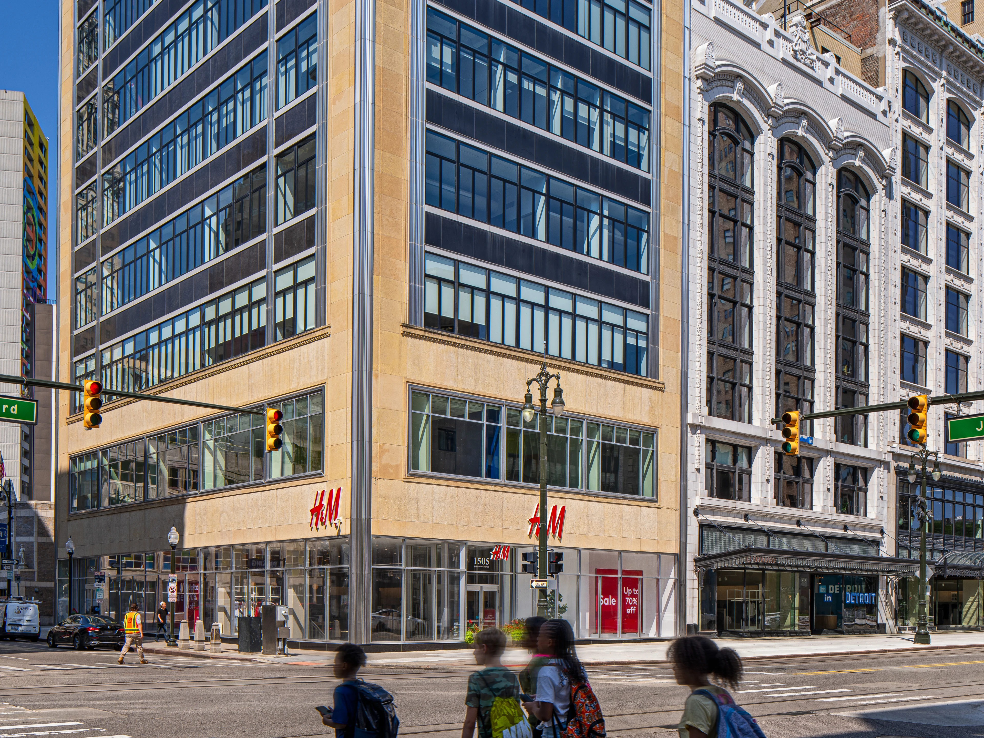 Retail at 1505 Woodward is anchored by H&M, a national fashion brand that draws steady traffic to the corner of Woodward and Clifford. The property offers high-visibility storefronts in one of downtown Detroit’s busiest shopping corridors, located between Grand Circus Park and Capitol Park. Surrounded by dining, entertainment, residential density and parking and transportation options, the location provides retailers with consistent activity throughout the day.